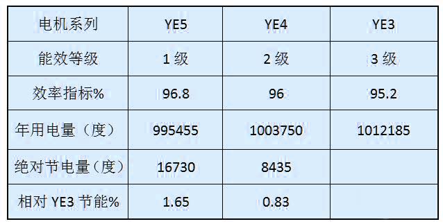 下表對(duì)不同能效等級(jí)電機(jī)的年耗電情況進(jìn)行了對(duì)比,并計(jì)算了YE4和YE5系列電機(jī)相對(duì)于YE3系列電機(jī)的節(jié)電情況。這個(gè)標(biāo)準(zhǔn)西門(mén)子要求的能效標(biāo)準(zhǔn)還要高出好多。工況選電機(jī),以后你用YE5一級(jí)能效電機(jī)的要求來(lái)買(mǎi)電機(jī)保障是您最佳的選擇!
